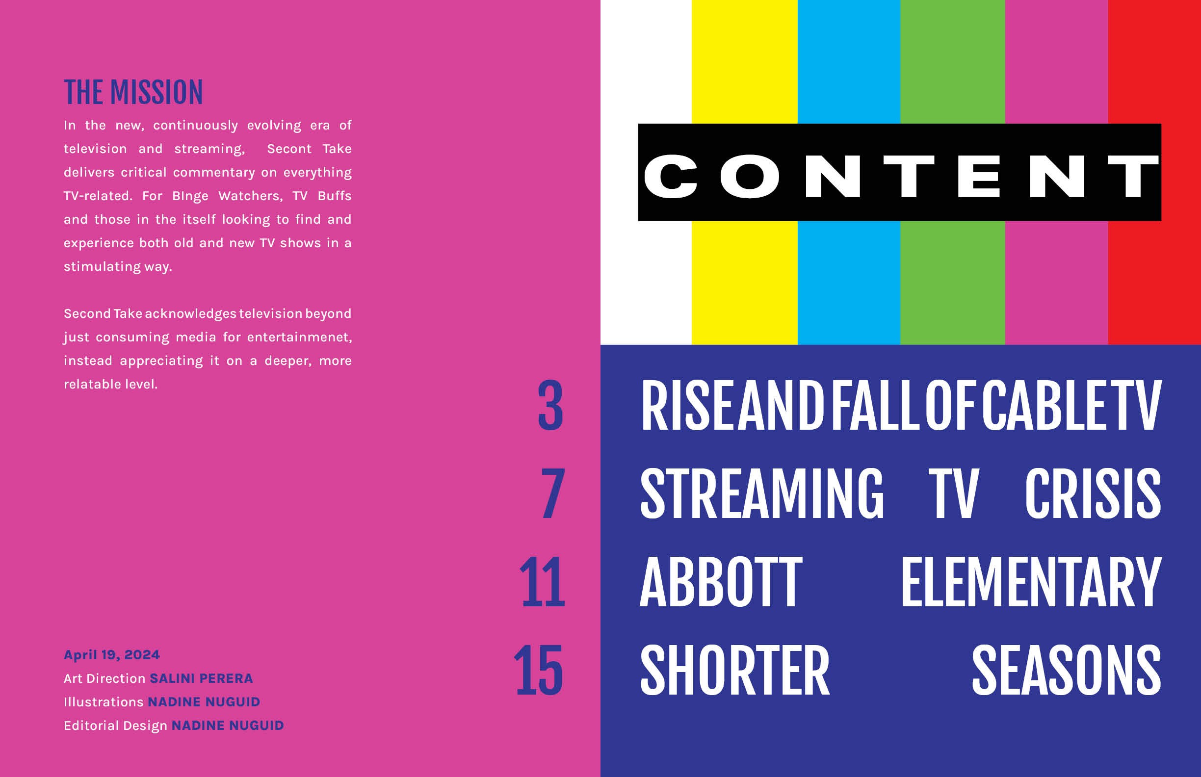 The Second Take is is an independent television (mock) magazine that takes a deeper, more critical look into television and shows for people in the industry and those between 18-30 years old who consume a lot of TV on a daily basis.