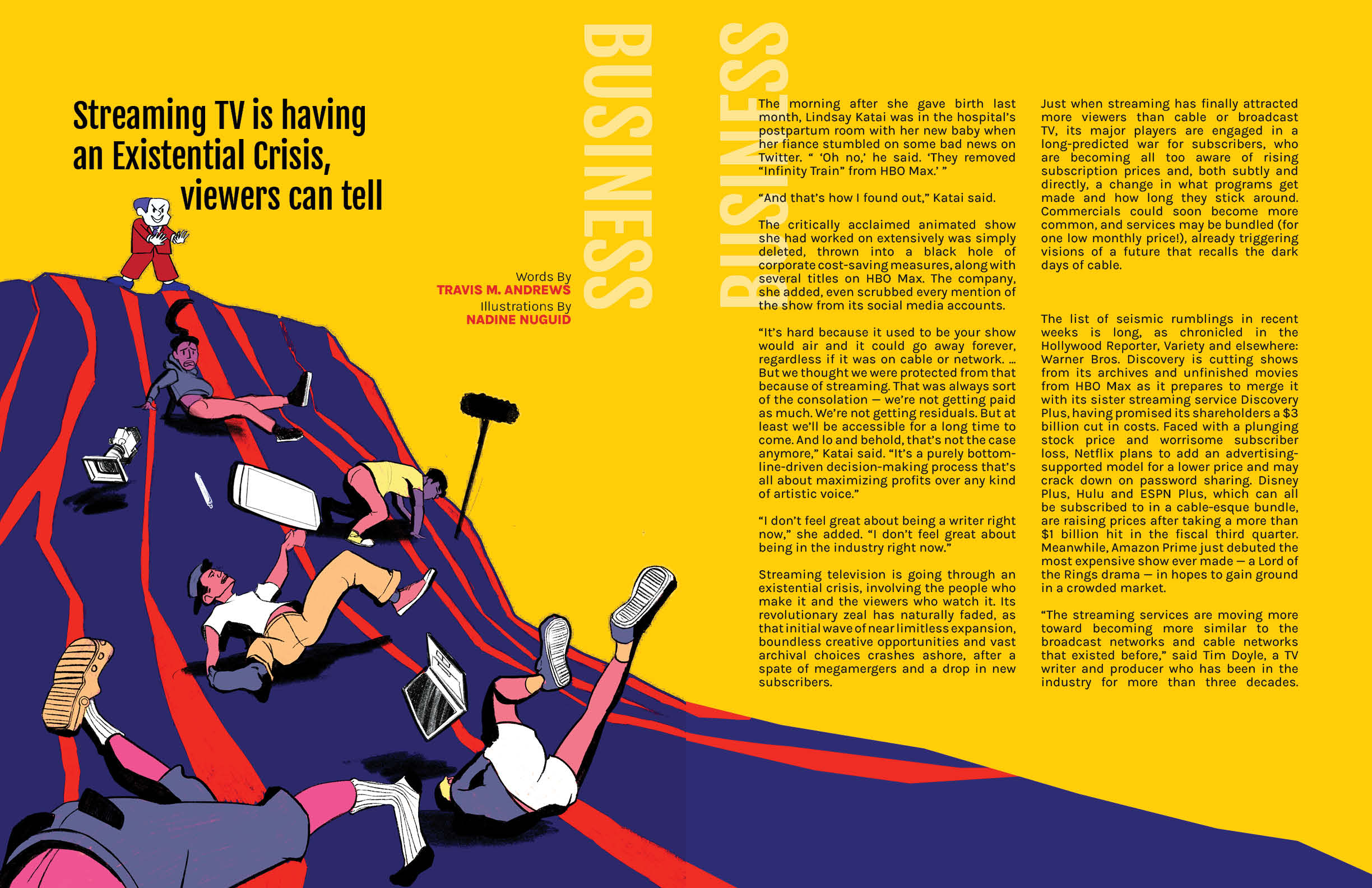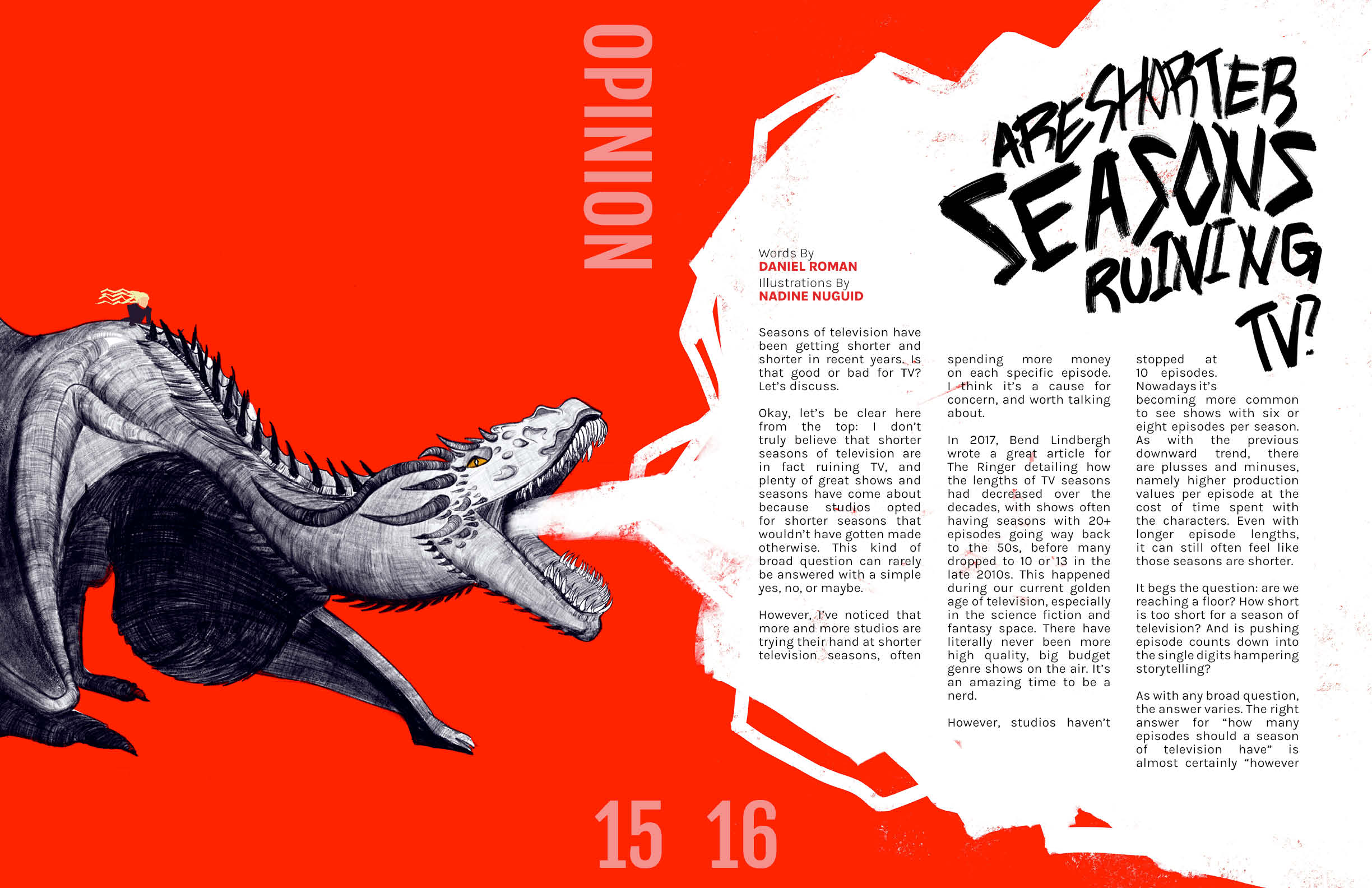 I was solely responsible for the design, conceptual development, and illustration work. The accompanying articles were curated from credible online sources. This was a solo 3 month long process. Illustrations were created in Photoshop and layout design was created in InDesign as spreads.